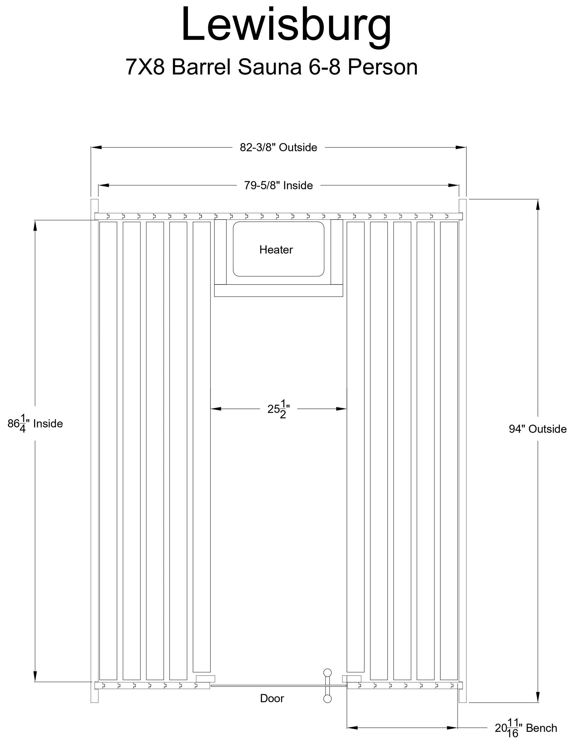 The 7′ x 8′ Lewisburg Sauna offers extra space to stretch out, with a larger diameter than standard barrel saunas. Choose a wood-burning heater or the Harvia 8kW electric heater, which heats to 180ºF for a steamy, relaxing session.
