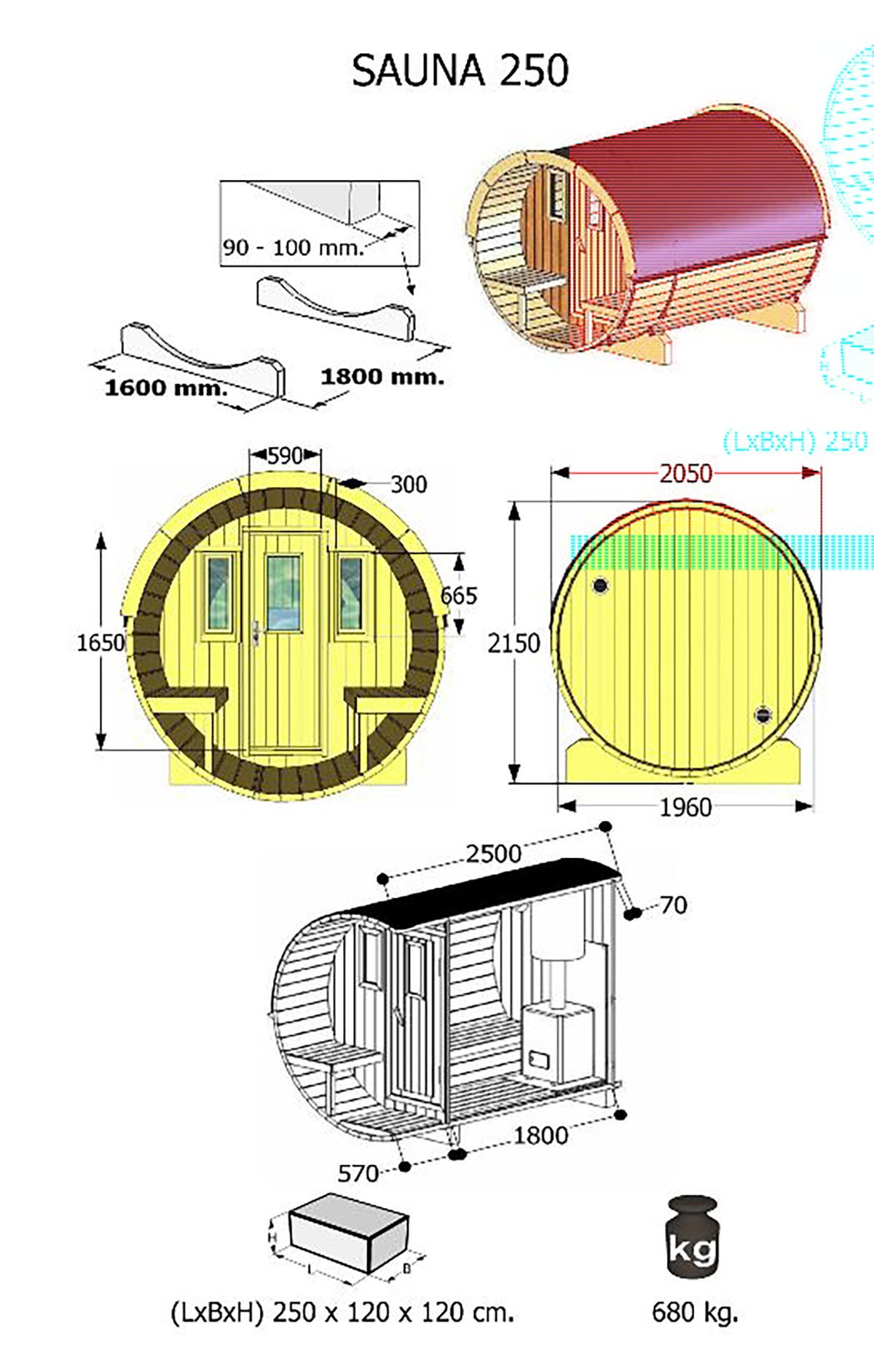 - Internal benches made of aspen – a durable, warm, and pleasant wood